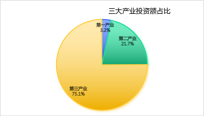 從投資結構看,第一產業投資同比增長2.4倍,占總投資比重的3.2%;第二產業投資同比下降18.2%,占總投資比重的21.7%;第三產業投資同比增長6.7%,占總投資的比重75.1%。